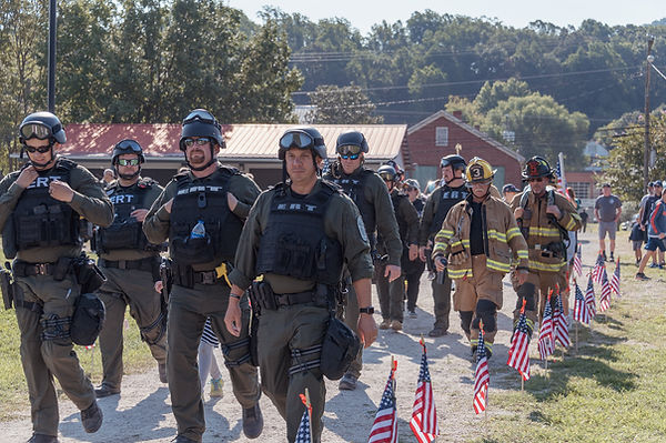 Sirens and Salutes sponsored a memorial walk in Buchanan that started at 8:46- the time the first tower was hit by the first aircraft and ending at 1028 , the time the second tower falls. During the walk we stopped for moments of silence when the second tower was hit, when the pentagon was hit, when Flight 93 crashes, and when the first tower falls. This year we were honored to have FDNY Firefighter (Retired) Al Weber, who spoke prior to the walk about how much 9/11 remembrance means to him, as he lost many friends and co-workers that day. This was the 3rd year for the walk in Buchanan and the 1st year sponsored by Sirens and Salutes, Inc. Plans are underway already for the 2022 Memorial Walk. Each fallen had a flag placed with an nametag and on the back of each tag was a short biography of them. Firefighters had red ribbons and law enforcement had blue ribbons tied to the flag.